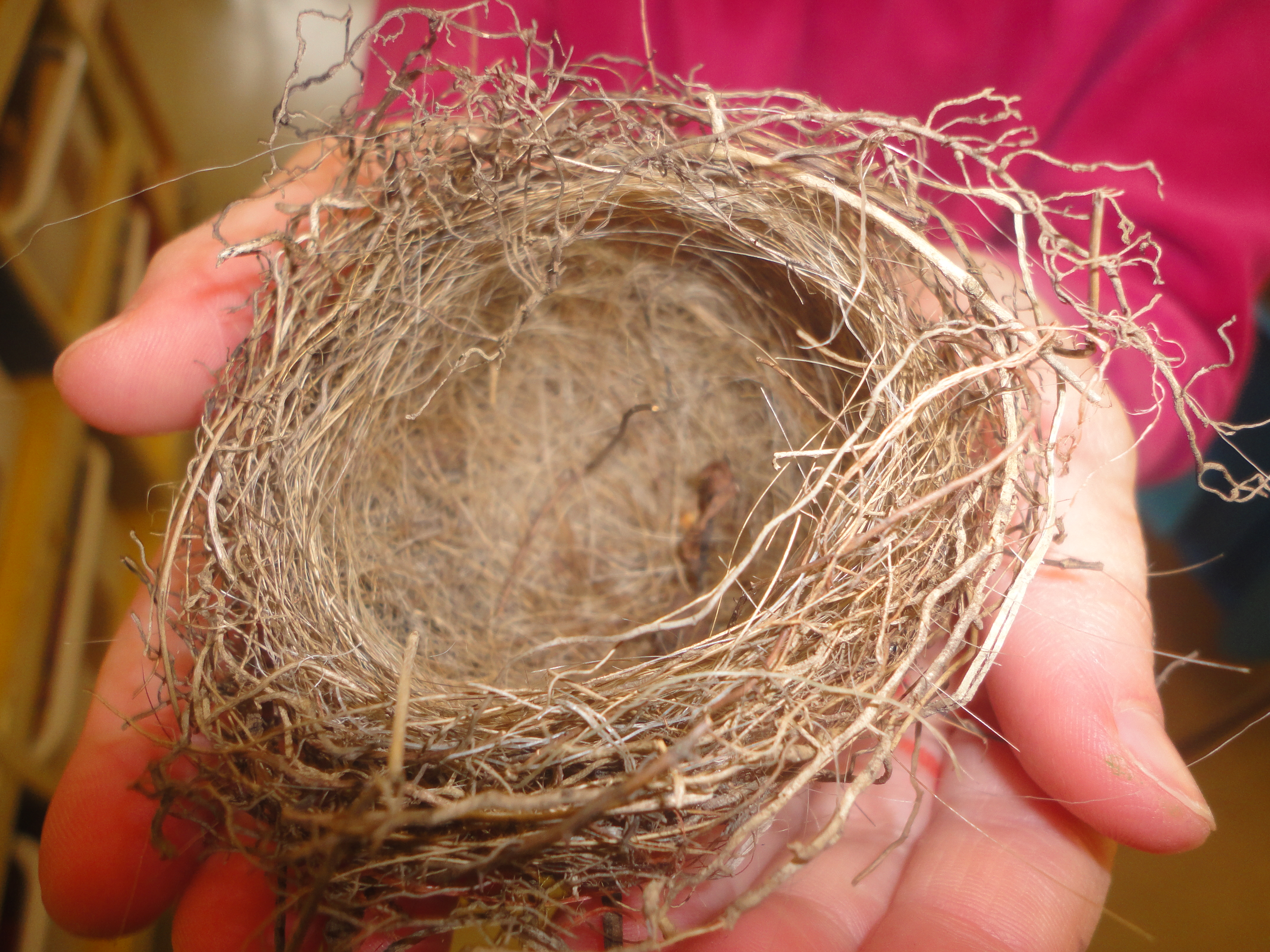 G.M.: I wonder where the nest came from. Maybe it was in a tree and the wind blew it down and then E.A. found it.