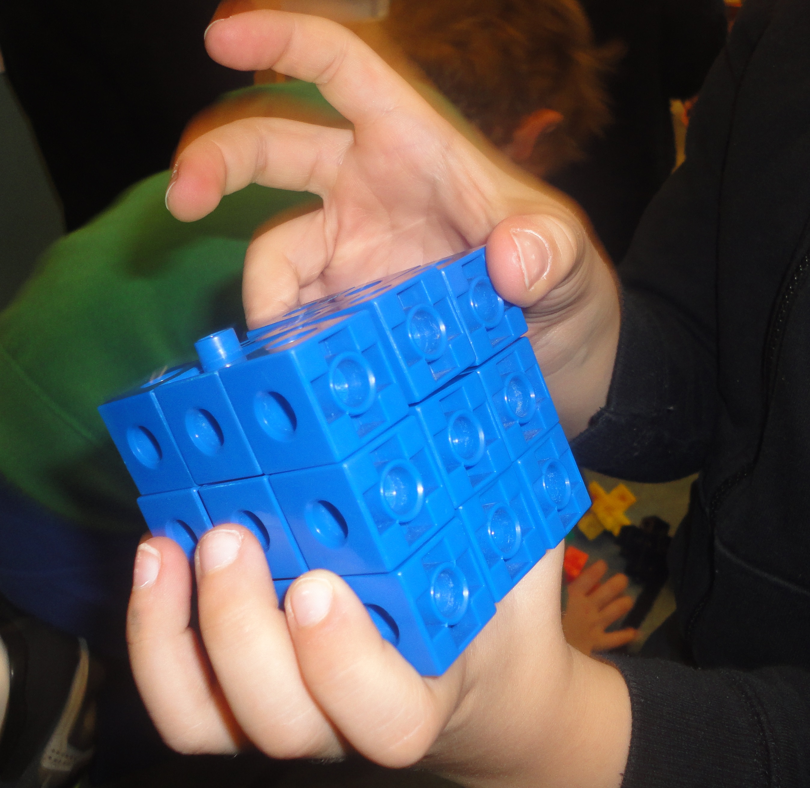 A: At the beginning of the year, M.S.I. time is mainly spent establishing routines and working on basic concepts of space, balance, making a plan, etc. There is a lot to be said just for helping the children locate a bin, find their own work space, build, and then tidy up. A lot of time also goes into establishing routines and expectations for sharing and reflecting on our structures at the end of the lesson. The most important part of the initial phase of M.S.I. is exploration and helping the children stay focused on solving problems rather than getting frustrated if/when their structure falls down. The children are often encouraged to choose different bins regularly to get a feel for the variety of materials we have available.