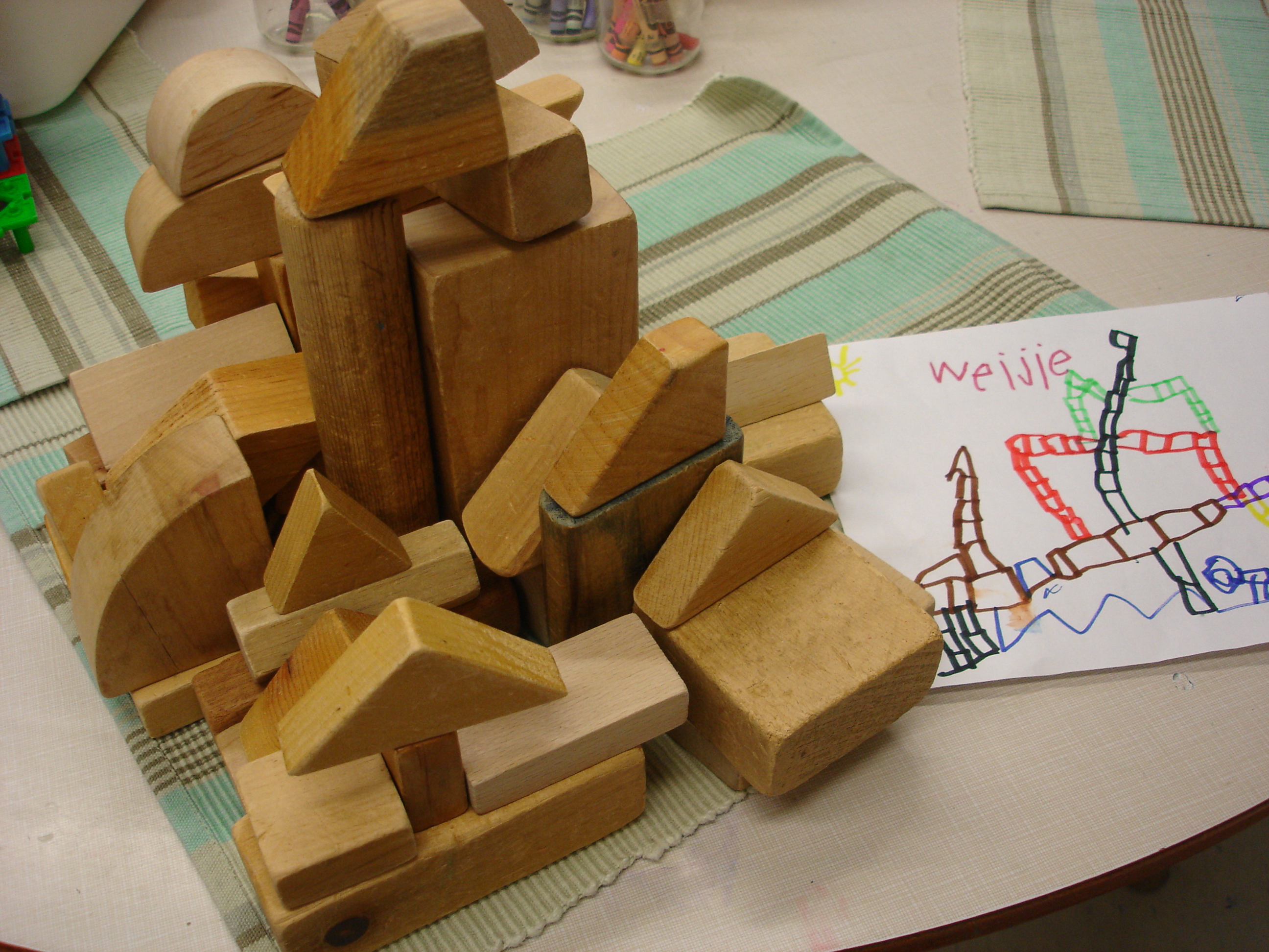 A: The resource Building Structures With Young Children focuses on two inquiries: Towers and Enclosures. This year we have completed a Tower Inquiry (which I will write more about soon) and are now working on enclosures. We have also done inquiries on bridges and castles. In one school year, we usually have time to complete at least 2 large structure inquiries through M.S.I.